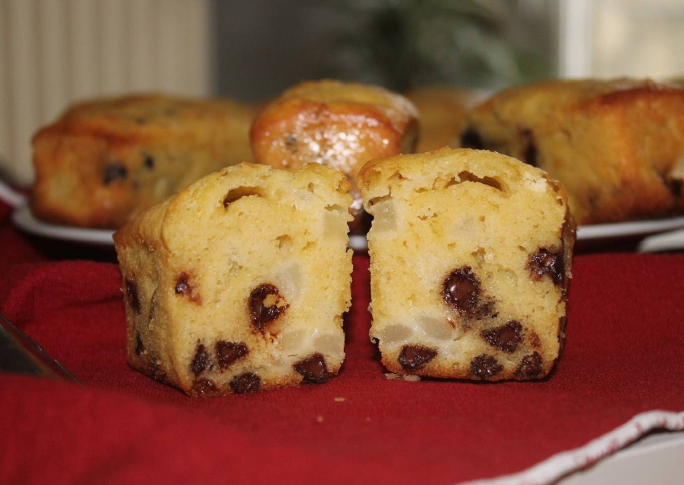 - Ajouter les pépites de chocolat et les morceaux de poires préalablement coupés en petit dés.