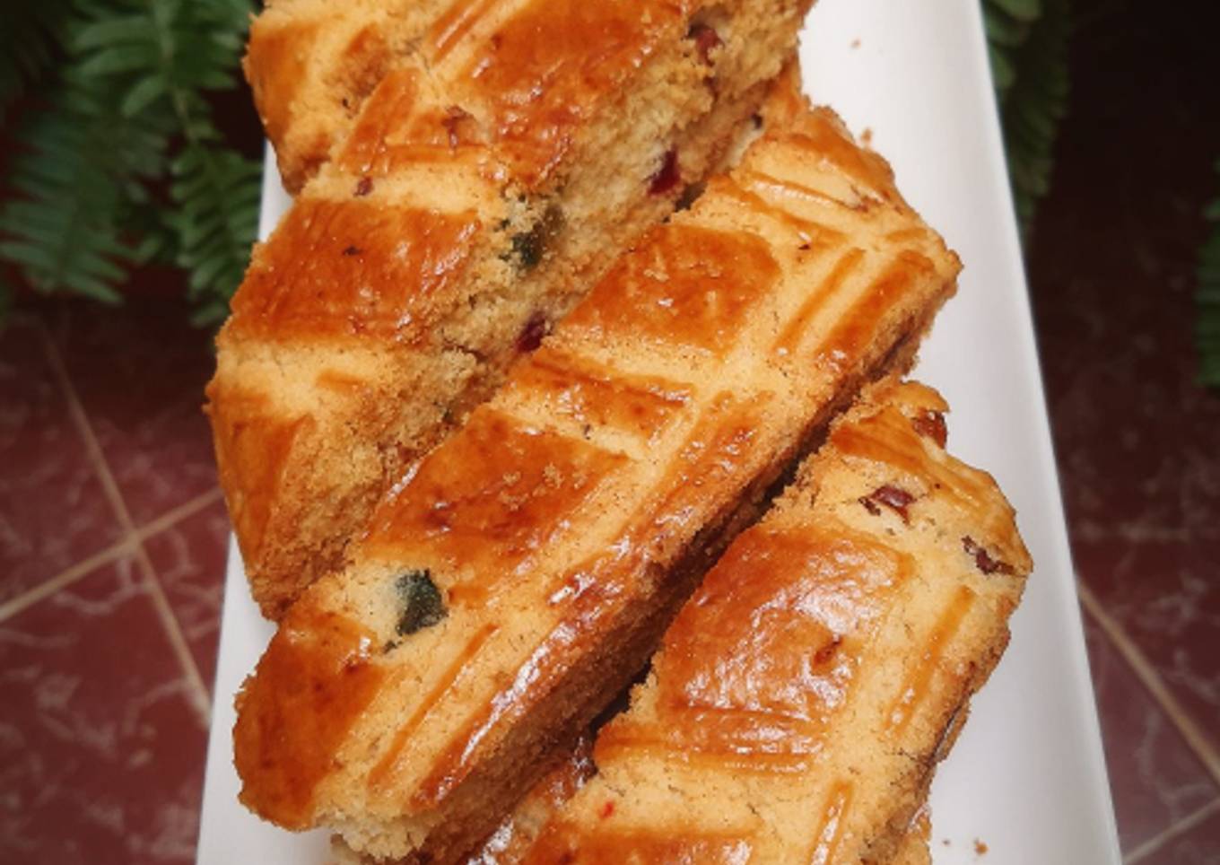 Instructions to make to make Croquet aux amandes raisins secs et fruits confits