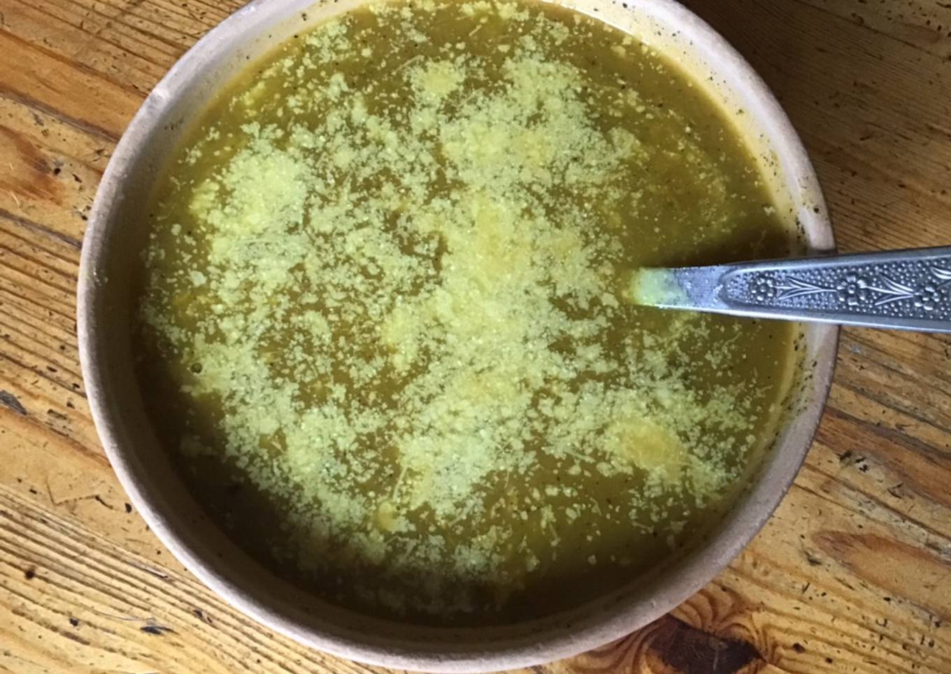 Soupe de tomates champignons céleri branche au curry et parmesan