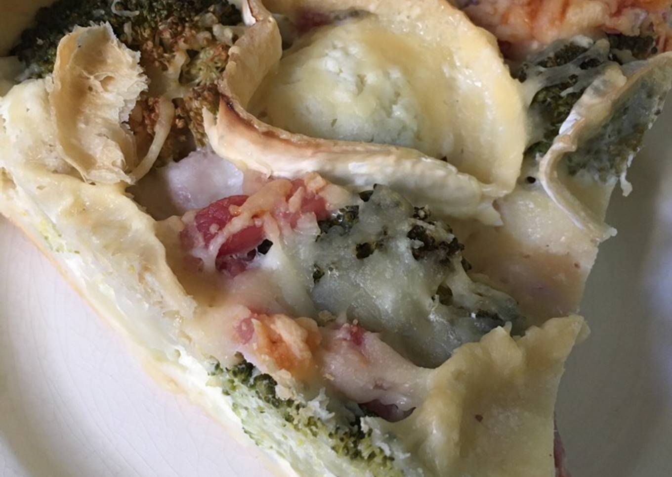 - Déposer la pâte feuilletée dans un plat à tarte. Laver le brocoli et répartie les têtes sur la pâte feuilleté ainsi que les lardons.